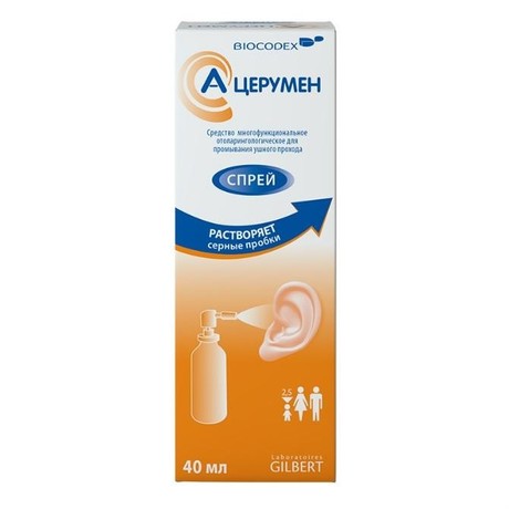 Другие формы «А-церумен»Спрей 40 мл в пластиковом флаконе с распылительной насадкой. Флакон вместе с инструкцией по применению помещают в картонную пачку.
