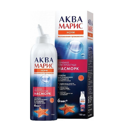 Изотоническая морская вода способствует поддержанию нормального физиологического состояния слизистой оболочки полости носа, разжижению слизи и нормализации ее выработки в бокаловидных клетках слизистой оболочки носовой полости. После применения изотонической морской воды, содержащейся в изделии Аква Марис, повышается терапевтическая эффективность ЛС, наносимых на слизистую оболочку носа, и сокращается продолжительность респираторных заболеваний. Изотоническая морская вода, содержащаяся в изделии для промывания и орошения полости носа Аква Марис, снижает риск распространения инфекции в пазухи носа и полость уха (гайморит, фронтит, отит). Снижает риск локальных осложнений и ускоряет процессы заживления после хирургических вмешательств (удаление аденоидов, полипов, септопластика и др.) на носовой полости. Снимает раздражение слизистой носа у лиц, слизистая оболочка верхних дыхательных путей которых постоянно подвергается вредным воздействиям (курильщики, водители автотранспорта, люди, живущие и работающие в помещениях с кондиционированным воздухом и/или центральным отоплением, работающие в горячих и запыленных цехах, а также находящиеся в регионах с суровыми климатическими условиями).