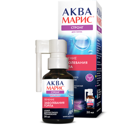 Препарат создан на основе стерильного гипертонического раствора (раствор, имеющий концентрацию вещества больше, чем внутри клетки) морской воды. Спрей Аквамарис успешно применяют для профилактических, гигиенических и лечебных целей, в результате чего происходит очищение, устранение раздражения слизистой поверхности горла и его дальнейшая защита от болезнетворных микроорганизмов. Входящие в состав микроэлементы усиливают резистентность (устойчивость, сопротивляемость) поверхности горла к вредным бактериям и вирусам, а также положительно влияют на местный иммунитет. Применяя Аквамарис для лечения горла, наблюдается мягкое антисептическое и противовоспалительное действие, увеличивается эффективность применения иных лекарственных средств, риск дальнейшего распространения инфекции значительно снижается.