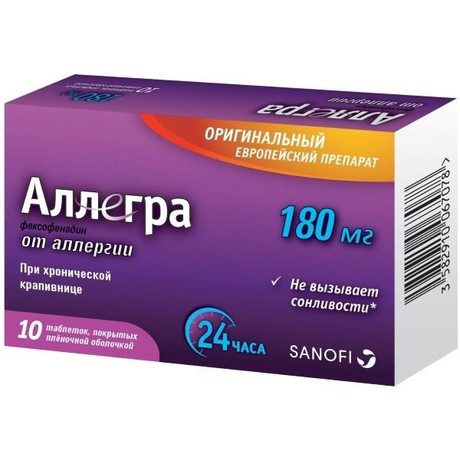 — хроническая идиопатическая крапивница (для уменьшения симптомов) - таблетки, 180 мг.