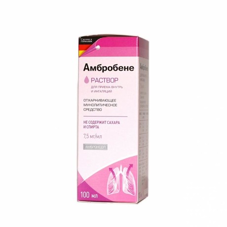 Ингаляционно. При применении препарата Амбробене в виде ингаляций можно использовать любое современное оборудование (кроме паровых ингаляторов). Перед ингаляцией препарат смешивается с 0,9% раствором натрия хлорида (для оптимально увлажнения воздуха можно развести в соотношении 1:1) и подогревается до температуры тела. Поскольку при ингаляционной терапии глубокий вдох может спровоцировать кашлевые толчки, ингаляции следует проводить в режиме обычного дыхания. Больным с бронхиальной астмой можно рекомендовать проводить ингаляцию после приема бронхолитических препаратов.