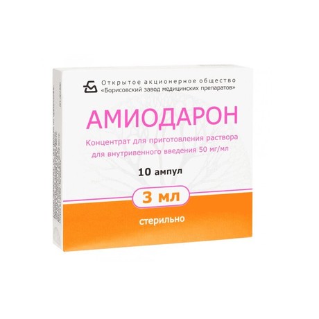 | Амиодарон | Р-ра д/в/в введения 50 мг/мл: 3 мл амп. 5 или 10 шт. рег. №: ЛП-006973 от 26.04.21 *- Действующее* |
