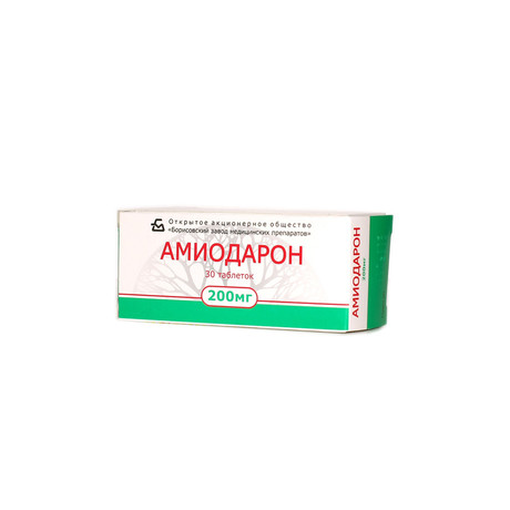 Противопоказан при беременности и в период лактации. ### Способ применения и дозы Амиодарон принимают внутрь во время или после приема пищи. Таблетку принимают целиком, запивая небольшим количеством жидкости. Доза препарата должна корректироваться в зависимости от состояния пациента и определяться врачом. Начальная доза составляет 600-800 мг (до 1200 мг) в сутки, разделенные на 2-3 приема. Курс лечения 8-15 дней. При необходимости возможно повышение дозы до 1200 мг амиодарона в день. После достижения признаков насыщения переходят к поддерживающей терапии. При поддерживающем лечении применяется наименьшая эффективная доза в зависимости от индивидуальной реакции больного и обычно составляет от 100 до 400 мг в сутки в 1-2 приема. В случаях, когда это возможно, через каждые 5 дней приема препарата делают двухдневный перерыв. Для взрослых средняя терапевтическая разовая доза - 0,2 г, средняя терапевтическая суточная доза - 0,4 г, максимальная разовая доза - 0,4 г, максимальная суточная доза - 1,2 г. ### Побочные действия Со стороны сердечно-сосудистой системы: часто - умеренная брадикардия (дозозависима); нечасто - синоатриальная блокада, AV блокада различных степеней, проаритмогенное действие (усиление уже существующей аритмии или возникновение новой, в том числе с остановкой сердца); очень редко - выраженная брадикардия, остановка синусового узла (у пациентов с дисфункцией синусового узла и пожилых пациентов); частота неизвестна - при длительном применении - прогрессирование симптомов хронической сердечной недостаточности. Со стороны пищеварительной системы: очень часто - тошнота, рвота, снижение аппетита, нарушение вкуса, ощущение тяжести в эпигастрии, повышение активности "печеночных" трансаминаз (в 1.5-3 раза выше нормы); часто - острый токсический гепатит с повышением активности "печеночных" трансаминаз и/или желтухой, включая развитие печеночной недостаточности, в том числе фатальной; очень редко - хроническая печеночная недостаточность (псевдоалкогольный гепатит, цирроз) в том числе фатальная. Со стороны дыхательной системы: часто - альвеолярный или интерстициальный пневмонит, облитерирующий бронхолит с пневмонией, в том числе с летальным исходом, плеврит, легочный фиброз; очень редко - бронхоспазм у пациентов с тяжелой дыхательной недостаточностью (особенно у пациентов с бронхиальной астмой), острый респираторный синдром, в том числе с летальным исходом; частота неизвестна -легочное кровотечение Со стороны органов чувств: очень часто - отложение липофусцина в эпителии роговицы (часто субъективные жалобы при этом отсутствуют, но если отложения значительные и частично заполняют зрачок, возможны жалобы на появление цветных ореолов или нечеткость контуров); очень редко - неврит зрительного нерва/зрительная нейропатия. Со стороны эндокринной системы: часто - повышение уровня Т4 при нормальном или незначительно выраженном снижении Т3 (при отсутствии клинических признаков дисфункции щитовидной железы лечение прекращать не следует). При длительном применении возможно возникновение гипотиреоза, значительно реже гипертиреоза (необходима отмена препарата); очень редко - синдром нарушения секреции АДГ. Дерматологические реакции: очень часто - фотосенсибилизация; часто - свинцово-синяя или голубоватая пигментация кожи (при длительном применении),
