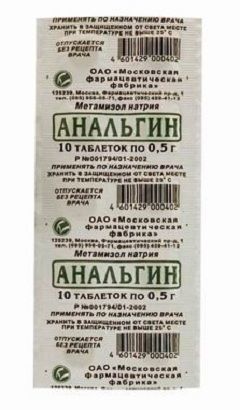 действующее вещество: метамизол натрия (анальгин) 500 мг