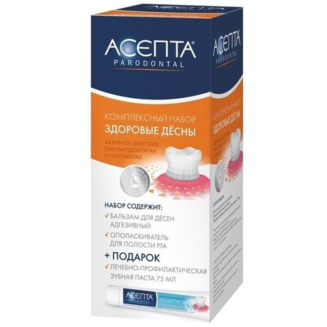 Совместное применение средств, входящих в набор, обеспечивает наиболее активное снятие воспаления пародонта благодаря комплексному действию за счет различных форм выпуска средств и комбинации активных компонентов.
