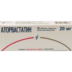 аторвастатин 20 мг.