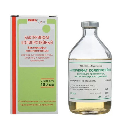 Активное вещество: смесь стерильный фаголизатов бактерий Proteus vulgaris, Proteus mirabilis и энтеропатогенной Escherichia coli различных серогрупп 100 мл.