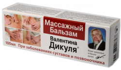 Другие формы «Бальзам косметический ВАЛЕНТИНА ДИКУЛЯ массажн.»Массажный Бальзам Валентина Дикуля при заболеваниях суставов и позвоночника - высокоэффективное, проверенное на практике средство для местного применения при заболеваниях суставов и позвоночника, разработанное академиком Валентином Ивановичем Дикулем, специалистом по болезням опорно-двигательного аппарата.Действие натуральных компонентов бальзаманаправлено на уменьшение болевого синдрома, снятие воспаления и отечности, активизацию кровообращения и метаболизма в околосуставных тканях.