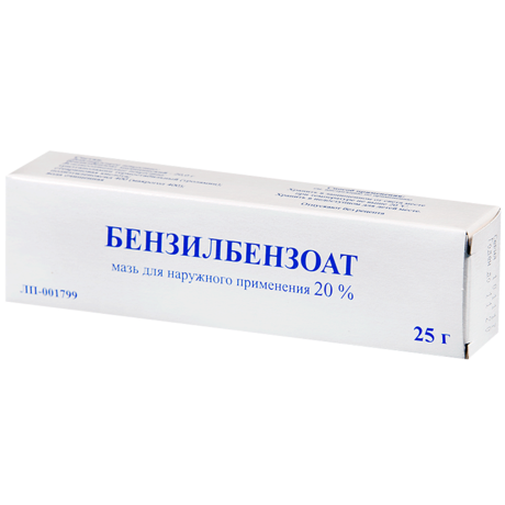 | Бензилбензоат | Мазь д/наружн. прим. 20%: 25 или 50 г банки, 25 или 30 г тубы рег. №: ЛП-001799 от 14.08.12 *- Бессрочно* |