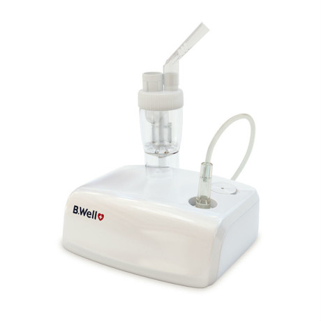 Небулайзер компании B.Well отличается высокой степенью надежности. Компрессор подает мощный поток воздуха в специальную камеру. Струя воздуха разбивает лекарственный препарат на сверхмалые частицы. В таком виде через маску или мундштук лекарственное средство поступает в дыхательные пути. Компания B.Well гарантирует, что данный прибор произведен из высококачественных материалов и соответствует действующим национальным и международным стандартам безопасности. Небулайзер является медицинским прибором, поэтому использовать его можно только в соответствии с указаниями Вашего врача. Пожалуйста, перед использованием прибора внимательно изучите руководство по эксплуатации и следуйте данным рекомендациям!
