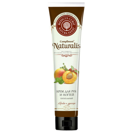 Другие формы «Крем COMPLIMENT Naturalis д/рук »Питательный крем, созданный на основе натурального абрикосового масла, богат витаминами и антиоксидантами, обеспечивающими полноценный уход за кожей рук. Крем способствует быстрому восстановлению баланса влаги в коже и замедляет процесс преждевременного старения, ухаживает за ногтями, чтобы они были крепкими и блестящими. Экстракт душицы снижает чувствительность кожи, препятствует развитию сухости и появлению раздражений.
