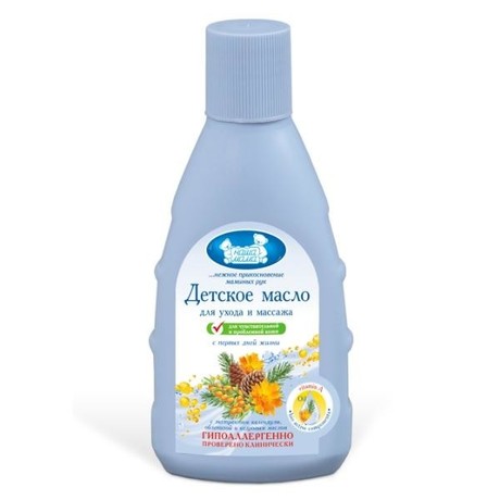 Детское масло «Наша Мама» питает и увлажняет нежную кожу малыша и способствует повышению ее эластичности и защитных свойств.