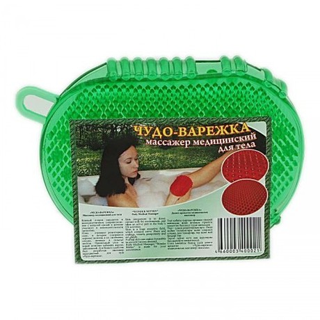 Массажер медицинский для тела "Чудо-варежка" имеет две разных по назначению поверхности: