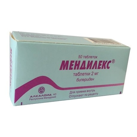 Мендилекс (бипериден) холиноблокирующий препарат центрального действия, с умеренно выраженным периферическим действием. В результате селективной блокады холинергических рецепторов, бипериден приводит к ослаблению признаков паркинсонизма (акатизии, мышечной ригидности, акинезии, дискинетическому дрожанию, окулогирному кризу).