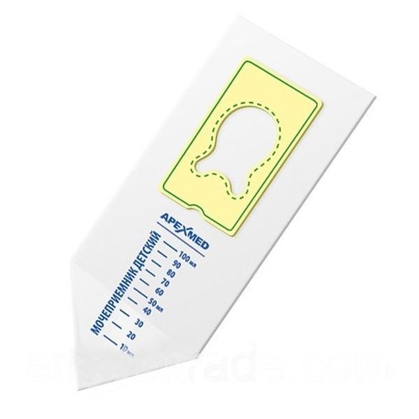 Детский мочеприемник представляет собой небольшой полиэтиленовый мешочек емкостью 100 мл с отверстием, который легко крепится к телу малыша с помощью специального абсолютно безопасного фиксирующего устройства, которое обеспечивает надежное прилипание и исключает возможность вытекания мочи.