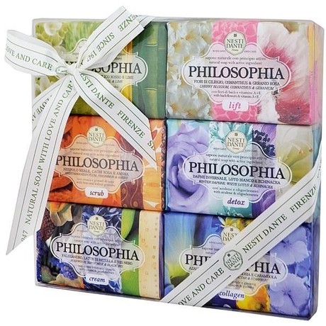 Другие формы «Мыло NESTI DANTE»Набор мыла ручной работы «Философия» - для тех, кто ценит бережный уход за кожей! В набор вошли 6 видов мыла, каждое из которых обладает особенным, уникальным свойством: крем-мыло «Жемчужная Пена» питает кожу, придает ей сияние и блеск; мыло «Живительная Свежесть» с экстрактом бамбука и хлорофиллом обладает освежающим и расслабляющим эффектом морского бриза; мыло «Скраб» с гранулами грецкого ореха превосходно отшелушивает кожу и сохраняет ее оптимальный баланс; мыло «Лифтинг» на основе экстракта цветов Баха и витаминов A и E очищает и восстанавливает; мыло «Детокс» с азуленом и олигоэлементами способствует регенерации и обновлению; мыло «Растительный Коллаген» с женьшенем и коллагеном укрепляют кожные ткани и улучшают внешний вид кожи.