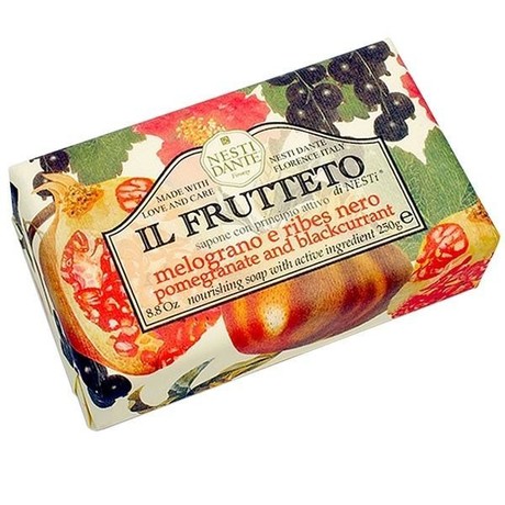 Мыло IL FRUTETTO Pomegranate and Blackcurrant оказывает питательное и тонизирующее действие. Оно на 98 % состоит из натуральных масел - оливкового и пальмового. Благодаря традиционной дорогостоящей «марсельской» технологии мыловарения, масла сохраняют полезные свойства, интенсивно увлажняя кожу во время очищения. Специально подготовленные фруктовые компоненты IL FRUTETTO от Nesti Dante придают мыльной пене аромат зрен граната и ягод чрной смородины. Не содержит синтетических сурфактантов, разрушающих защитный слой кожи.