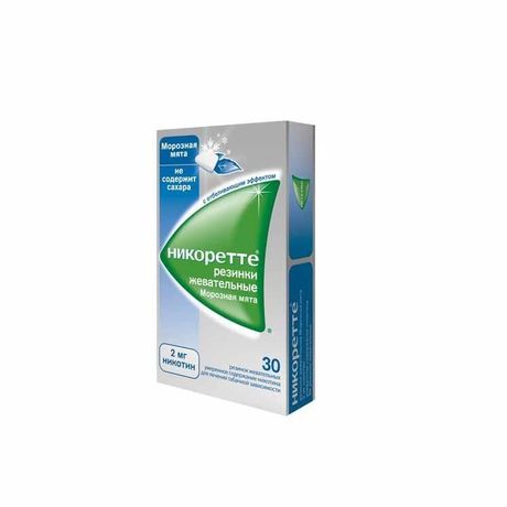 НИКОРЕТТЕ ЖЕВАТЕЛЬНАЯ РЕЗИНКА МОРОЗНАЯ МЯТА - препарат для лечения никотиновой зависимости. После резкого отказа от курения у пациентов, ежедневно использующих никотинсодержащие продукты в течение длительного времени, возможно развитие синдрома отмены, который включает в себя дисфорию, бессонницу, повышенную раздражительность, тревогу, нарушение концентрации внимания, снижение ЧСС, повышение аппетита и увеличение массы тела, а также желание курить.