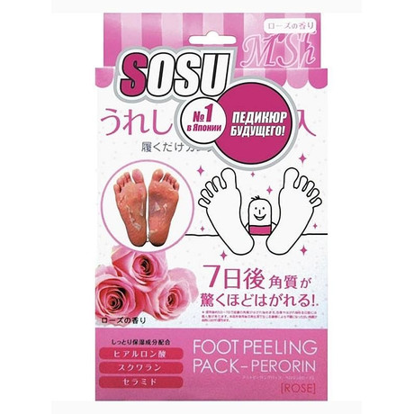 Другие формы «Носки SOSU д/педикюр»Педикюрные носочки “SOSU” – «педикюр будущего». Представляет собой носочки с особым высокотехнологичным составом, который помогает избавиться от натоптышей, ороговений, мозолей и других дефектов кожи стоп. Применение носочков ведет к отшелушиванию и естественному отторжению мертвых слоев кожи.