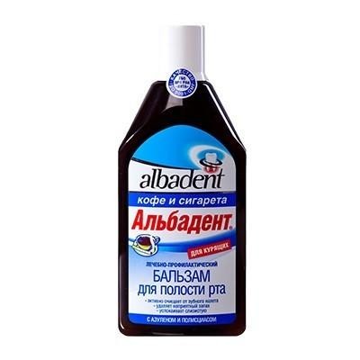 Гидратирует обезвоженную после курения полость рта. Имеет высокую очищающую способность от специфического зубного налта и эффективно освежает полость рта. Противовоспалительный бальзам для курящих «Альбадент" Кофе и сигарета рекомендуется использовать вместе с освежителем дыхания, компактным аксессуаром для делового общения с одноимнным названием.