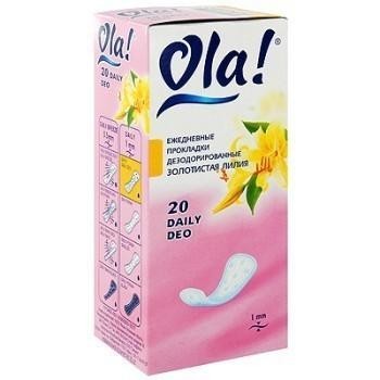 Другие формы «Прокладки гигиенические OLA ежед»Ежедневные прокладки анатомической формы с нежным ароматом лилии. Верхний слой прокладки – мягкий, как хлопок, материал Soft Lace, не вызывающий раздражения кожи. Внутри прокладки – длинноволокнистая распушенная целлюлоза, что обеспечивает самую высокую впитываемость прокладки среди ежедневных.
