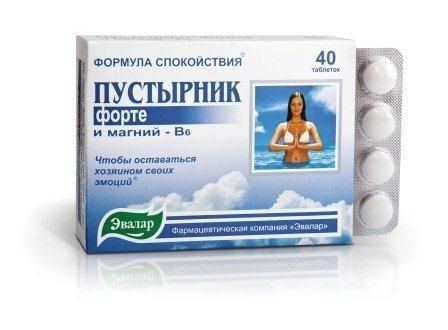 1 таблетка содержит магния карбонат, экстракт пустырника, витамин В6