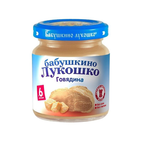 Другие формы «Пюре БАБУШКИНО ЛУКОШКО»Пюре Бабушкино Лукошко Говядина. Говядина - источник незаменимого для ребенка животного белка, витаминов В1, В12 и легко усвояемого железа. Растительное масло обогащает пюре витамином Е.