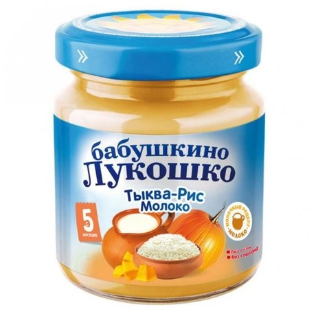 Другие формы «Пюре ФРУТОНЯНЯ»Пюре Бабушкино Лукошко Тыква с рисом и молоком, благодаря входящим в состав пектинам, выводит из организма вредные вещества. Тыква содержит каротин, который улучшает здоровье глаз и кожи. Входящий в состав пюре рис мягко регулирует стул, уменьшая его частоту.