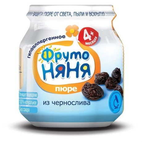 Другие формы «Пюре ФРУТОНЯНЯ»Чернослив - источник пищевых волокон, регулирующих деятельность кишечника, содержит калий, обладает мягким послабляющим действием. Подходит в качестве первого фруктового прикорма.