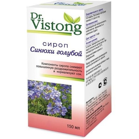 «Сироп Синюхи голубой» серии «Dr.Vistong» – это растительный комплекс на основе успокаивающих трав, которые способствуют снижению нервного напряжения, раздражительности и тревоги. Компоненты сиропа эффективны в случаях бессонницы, плохого настроения, подавленного общего состояния, повышенной раздражительности и беспокойства, головных болей, вызванных нервными напряжениями.