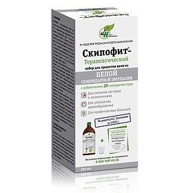 Скипофит-Терапевтический – набор для принятия ванн из белой скипидарной эмульсии с экстрактами трав предназначен для принятия скипидарных ванн из эмульсии скипидарной белой в качестве вспомогательного средства для профилактики или облегчения течения хронических заболеваний за счет улучшения микроциркуляции крови и стимуляции восстановительных процессов в органах и тканях, в том числе и в костной и хрящевой тканях, и как самостоятельное общеукрепляющее средство.