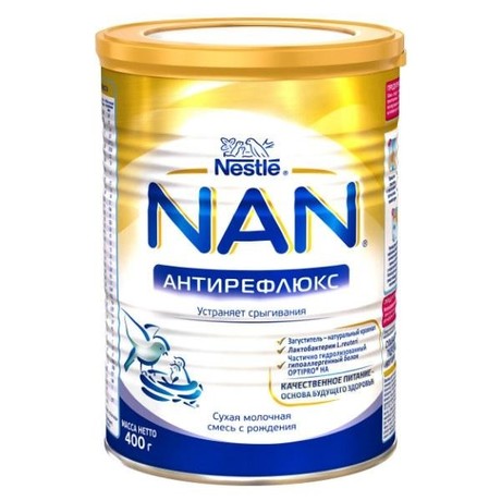 NAN Антирефлюкс содержит натуральный загуститель крахмал-который придат смеси необходимую густоту, задерживая е в желудке и предотвращая обратное забрасывание пищи в пищевод (срыгивание). Смесь NAN Антирефлюкс снижает риск развития пищевой аллергии и способствует укреплению иммунитета. Смесь NAN Антирефлюкс обеспечивает ребенка всеми питательными веществами, необходимыми для его оптимального умственного и физического развития. Смесь NAN Антирефлюкс предназначена для кормления детей с рождения в случаях, когда грудное вскармливание невозможно