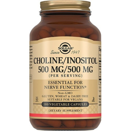 Бренд Solgar (Солгар) - всемирно известный производитель высокоэффективных натуральных препаратов для здоровья. Капсулы «Холин/Инозитол 500 мг/500 мг ( Choline/Inositol 500 mg/500 mg Vegetable Capsules) - сбалансированный состав Холин и инозитол - витаминоподобные вещества, относящиеся к линии витаминов группы В. В4 и В8 соответственно. Они являются компонентами клеточных мембран и играют важную роль в здоровом росте и функционировании клеток. Холин и инозитол поддерживают энергетический обмен. Из холина в организме синтезируется важнейший нейромедиатор - ацетилхолин - передатчик нервных импульсов. Холин является структурным компонентов фосфолипидов (лецитин), оптимизирует уровень инсулина и холестерина в организме, способствует нормальному жировому метаболизму и поддерживает здоровье печени. Действие инозитола многогранно: укрепление клеточных мембран, способствует восстановлению нервной ткани, активное участие в построении белка, оказывает положительное действие на обмен веществ, способствует профилактике атеросклероза. Избыточное потребление кофе может привести к нехватке инозитола. Дефицит инозитола может способствовать подверженности бессоннице и стрессовым состояниям. Не содержит глютена, пшеницы, молочных продуктов, ГМО Без консервантов. Подходит для вегетарианцев. без красителей без отдушек Рекомендуемый прием (2 капс.) содержит: Холин 500 мг Инозитол 500 мг что составляет 100% от адекватного уровня потребления