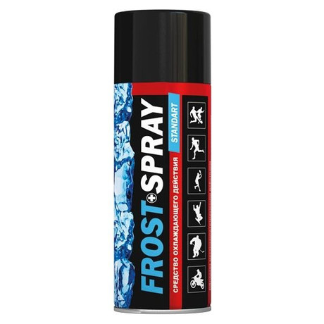 Другие формы «Спрей FROST»Средство дезодорирующее и охлаждающее ФРОСТ СПРЕЙ СТАНДАРТ предназначено для быстрого охлаждения поверхности кожи и мышечных тканей во время занятий спортом и в быту, при спортивных травмах, вывихах, ушибах, растяжениях, при мышечном переутомлении без оказания лечебного эффекта.