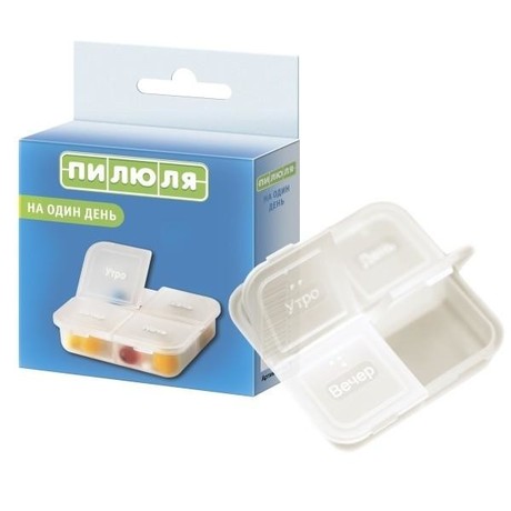 Состоит из 4-х отделений для распределения лекарств или витаминов в соответствии с суточным режимом приема: утро, день, вечер, ночь.