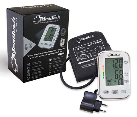 Автоматический тонометр на плечо MediTech МТ-40, с адаптером - мягкий чехол в коробке. Побочные действия Побочные эффекты от применения изделия отсутствуют.
