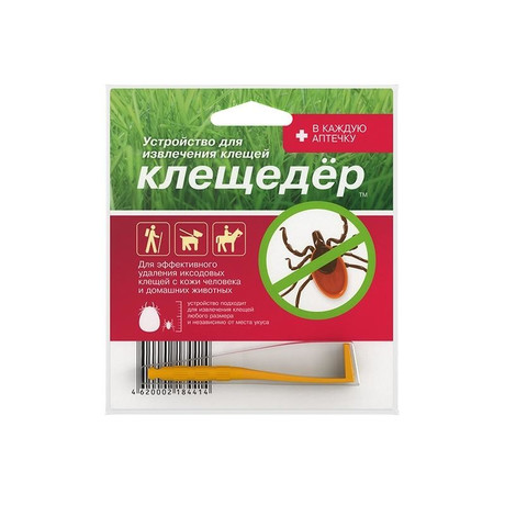 Устройство для извлечения клещей - это специальное приспособление индивидуального применения, разработанное для эффективного удаления иксодовых клищей из кожи человека и домашних животных. Удаление клеща производится полностью, не отрывая и не оставляя головку, безболезненно, за несколько секунд, независимо от размера насекомого и месторасположения. При этом устройство не деформирует волосы, кожный покров, не пугает и не озлобляет животных.