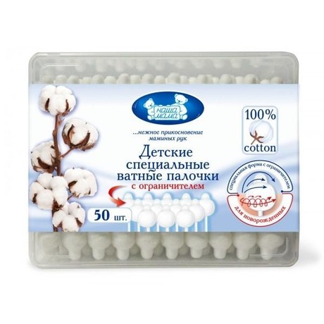 Ватные палочки - это дополнительная безопасность за счет ватного ограничителя физиологической формы.