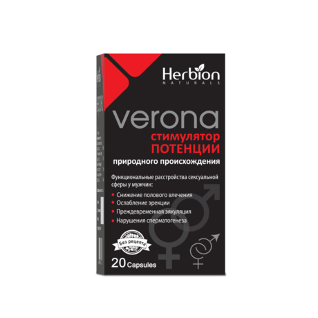 Капсулы желатиновые, красного цвета, размер №0, на корпусе и колпачке маркировка "Верона"; содержимое капсулы - аморфный гигроскопический порошок от светло-коричневого до темно-коричневого цвета, с ароматным запахом.