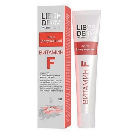 Другие формы «Librederm»Либридерм Витамин Ф крем полужирный применяется для защиты кожи от сухости и раздражений, при лечении порезов, ссадин, ожогов, крапивницы, экземы, дерматита, различных язв, пролежней, псориаза и других нарушений кожного покрова.