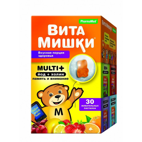 ВитаМишки Multi+ - сбалансированный витаминно-минеральный комплекс в виде вкусных мармеладных пастилок мишек с натуральными фруктовыми и овощными экстрактами, для детей с 3-х лет