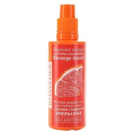 BELWEDER МЯГКАЯ ЖИДКОСТЬ ДЛЯ СНЯТИЯ ЛАКА С МАСЛОМ СЛАДКОГО АПЕЛЬСИНА - мягкая жидкость для снятия лака и средств, имеющих лаковую форму - содержит касторовое масло, экстракт пшеницы, масло сладкого апельсина. - тщательно удаляет лак и жирные пятна с ногтевой пластины, не высушивая ее. Экстрамягкая жидкость для удаления лака и препаратов, имеющих лаковую форму. Бережный уход за ногтями. Жидкость удаляет лак, блестки, аппликации. Формула жидкости препятствует высушиванию и повреждению ногтевой пластинки. АКТИВНЫЕ ИНГРЕДИЕНТЫ: МАСЛО СЛАДКОГО АПЕЛЬСИНА - натуральный ароматизатор. ПШЕНИЦЫ ЗАРОДЫШЕЙ МАСЛО - масло богато антиоксидантами, особенно, витамином Е; смягчает и увлажняет сухую кожу и ногтевую пластину. КЛЕЩЕВИНЫ СЕМЯН МАСЛО - касторовое масло - смягчает и увлажняет сухую кожу, волосы, ногтевую пластину. Специальные особенности: БЕЗ АЦЕТОНА