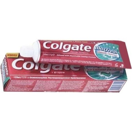 Другие формы «Зубная паста COLGATE»Инновационная зубная паста Colgate Макс Фреш с освежающими кристаллами резко выделяется среди других зубных паст своей необычной формой и длительным действием. Зубная паста с текстурой прозрачного геля и кристаллами, растворяющимися при чистке зубов, позволяет добиться фантастического эффекта - свежее дыхание как минимум в течение трех часов!