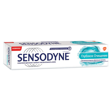 Зубная паста Sensodyne Глубокое Очищение - фторсодержащая зубная паста для ежедневного использования, которая обеспечивает ежедневный уход за чувствительными зубами.