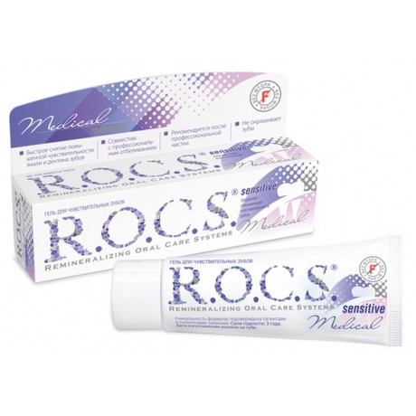 Гель R.O.C.S. Medical Sensitive позволяет быстро снять болевые симптомы / предотвратить их возникновение и одновременно осуществить реминерализацию твердых тканей зубов (эмали и дентина).
